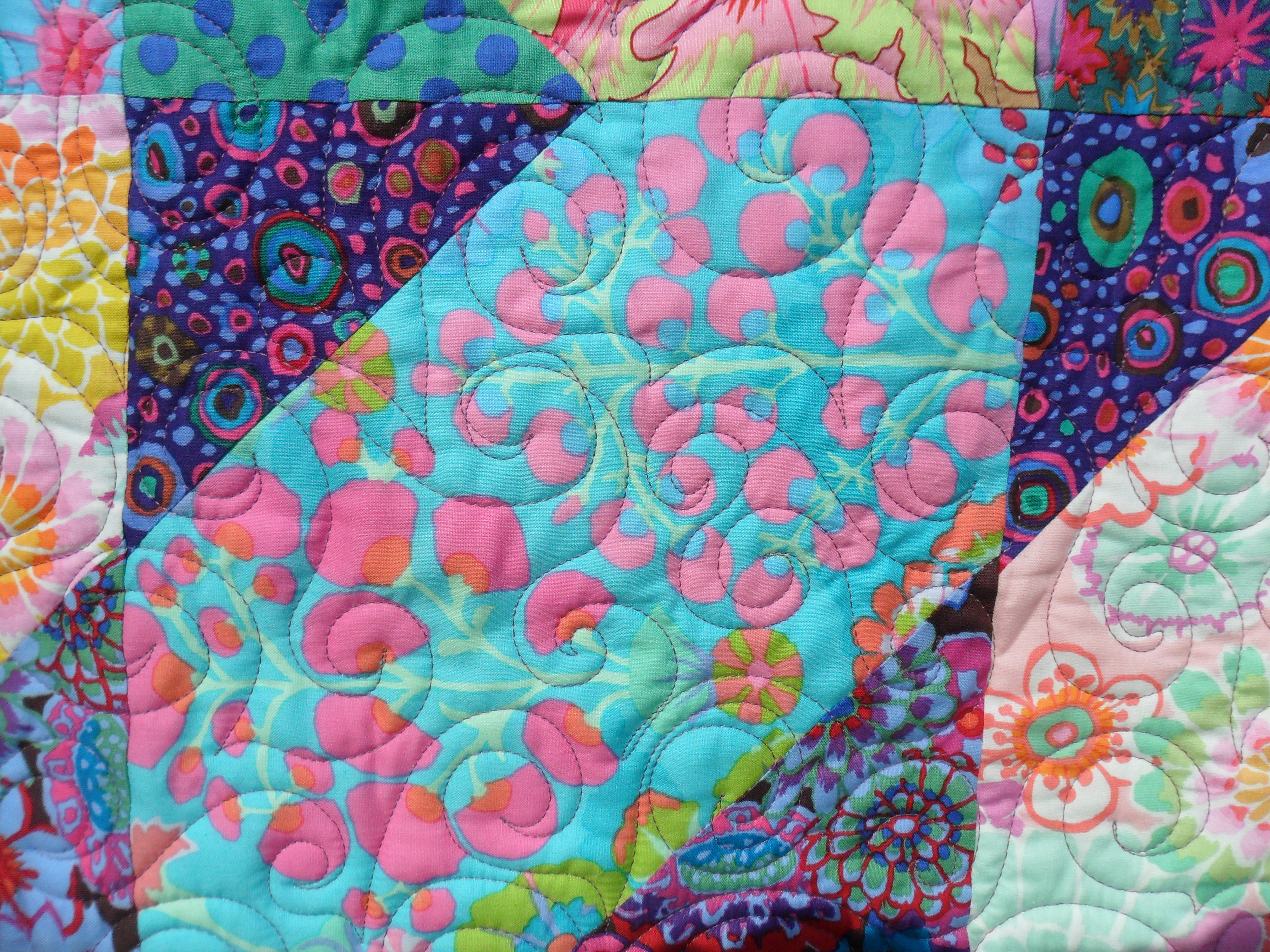 This is a baby quilt commissioned by a client in London, I was excited to make it as the client wanted a bright quilt for a new baby, I chose Westminster fabrics for the quilt not only because they are such wonderful colours they are also lovely and soft. And as I don,t have my long-arm quilting machine here I had to use my domestic sewing machine to quilt it, it was fun to quilt and I did a free-motion swirl, with a lot of quilting as I am sure it will be washed many time so it will be stable and durable, I also machine sewed the binding in place as I alway do for baby quilts again for durability as it pops in and out of the washing machine. Oh, thats my lovely blue eyed kitty Sid on the table, he’s adorable.
