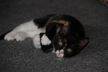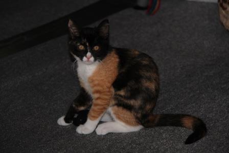 Our new kitten has really settled in well, and is not afraid of the other 6 cats. In fact, they seem more afraid of her!